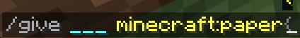Replace the underscores with your username and you'll give yourself paper. You can also add a number at the end to give yourself more of that item. If you want to give yourself a whole other item completely, simply replace the "minecraft:paper" with something like "minecraft:map" and so forth.